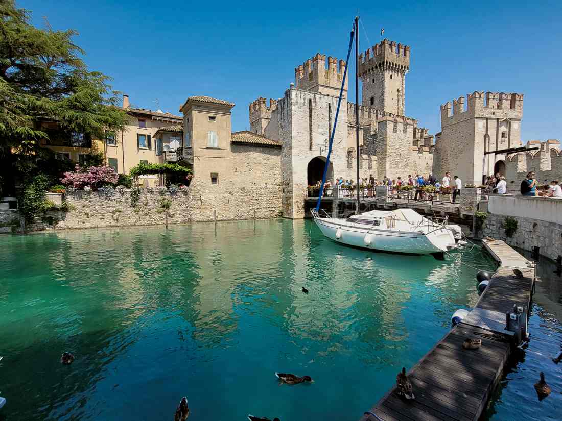 Замок Скалигеров - это одно из самых узнаваемых достопримечательностей Сирмионе. Он находится сразу у входа в старый город, словно напоминая, что когда-то сюда можно было попасть только через его ворота и подъемный мост. Строительство замка началось по приказу семьи Скалигеров, правителей Вероны во второй половине XIII века, предположительно на месте древнеримского укрепления. Замок был возведён для защиты южного побережья озера Гарда, ведь город Сирмионе, принадлежавший тогда Вероне, находился на пограничных землях и постоянно подвергался угрозе нападений. Спустя примерно столетие крепость перестроили, добавив два внутренних двора и барбакан — укреплённый внешний вход, усиливший оборону замка. В 1405 году Сирмионе вместе с замком перешёл под власть Венецианцов. Они начали восстанавливать и укреплять оборонительные сооружений на озере Гарда. Примерно в это время к замку пристроили внутреннюю гавань, окружённую каменными стенами, именно тогда крепость приобрела свой почти современный облик. Считается, что ещё во времена Скалигеров гавань уже существовала, но была сделана из дерева. В XVI веке замок утратил своё военное значение: оборонительная функция перешла к укреплённой крепости в соседней Пескьере-дель-Гарда. В последующие столетия, особенно в наполеоновскую эпоху и при Габсбургах, помещения замка использовались как склады и казармы. Позднее здесь размещались муниципальные службы, почта, пост карабинеров и небольшая тюрьма. После 1919 года в замке началась масштабная реставрация, восстановили внутреннею гавань, которая к тому времени была засыпана мусором. С башен замка открывается красивый вид на весь полуостров и голубые воды озера Гарда.