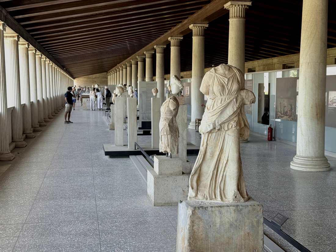 Стоа Аттала були побудовані пергамським царем Атталом II і названі на його честь. Його правління датується періодом з 159 до 138 року до н.е., а зведення цієї споруди стало щедрим подарунком Афінам, місту в якому він навчався. Про це свідчить напис, виявлений на одній із колонад, «Цар Аттал, син Аттала I і цариці Аполлоніди». Довжина споруди 115 метрів, ширина понад 20 метрів, а колони височіли майже на 5 метрів. Порівняно з іншими подібними будівлями Афін, Стоа виділялася складною архітектурою і значно перевершувала їх за розмірами. З погляду планування Стоа була ідеальним прикладом громадської будівлі, колонади захищали відвідувачів від вітру взимку і від спекотного сонця влітку. У стародавніх Афінах споруда виконувала роль своєрідного торгового центру, тут афіняни проводили вільний час, спілкувалися, зустрічалися і торгували. Крамниці розташовувалися на двох поверхах, створюючи жваву атмосферу стародавнього торгового центру.