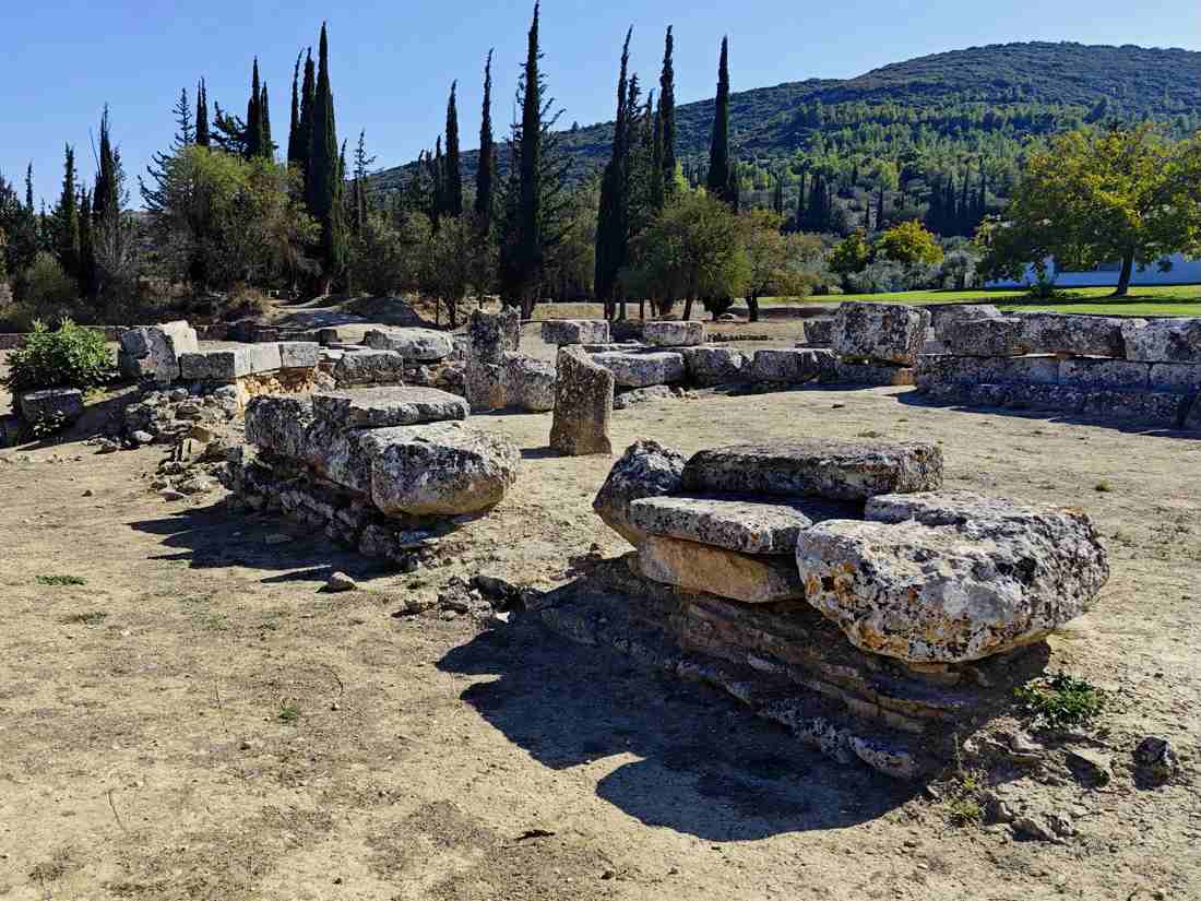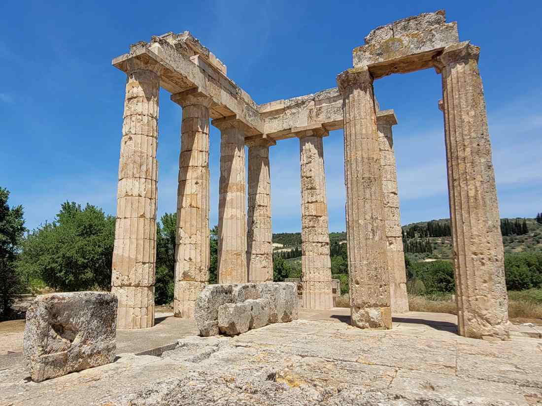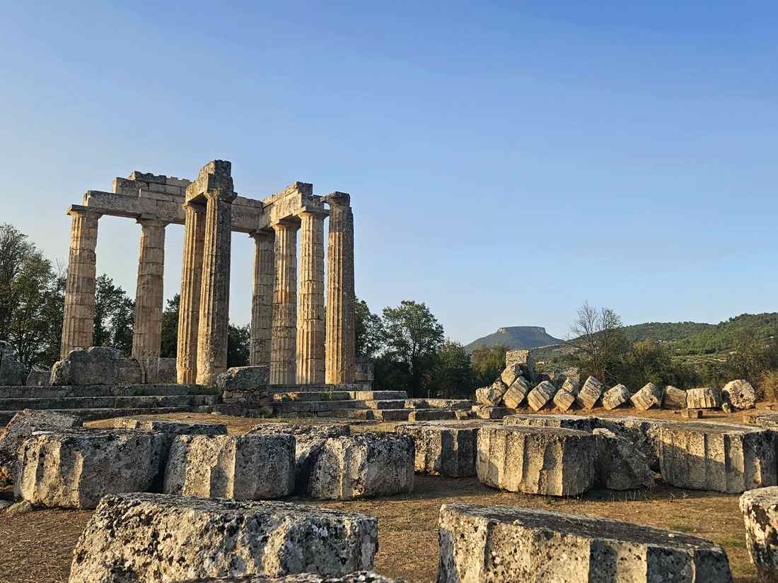 Немея это долина холмов и виноградников на северо-востоке Пелопоннеса. Сегодня здесь царит тишина и спокойствие, но в древности Немея была местом, куда стекались паломники и атлеты со всей Эллады. Именно с Немеей связан один из самых известных мифов Древней Греции, подвиг Геракла. По преданию, Геракл сразился здесь с Немейским львом, чья шкура была неуязвима для оружия. Он задушил льва голыми руками, снял с него шкуру и с тех пор носил её как символ силы и мужества, который мы видим на изображениях. В честь Зевса здесь проводились Немейские игры, они собирали атлетов со всего древнего мира и считались одни из четырёх великих игр наряду с Олимпийскими. Атлеты состязались в беге, метании копья и борьбе, а победителей венчали сельдереем, растением считавшимся священным в этих местах. Сегодня в Немее можно увидеть впечатляющие руины храма Зевса с сохранившимися колоннами, древний стадион и каменный тоннель, по которому когда-то выходили участники Немейских игр. Современная Немея привлекает не только древними руинами и легендами, но и своими винами. На плодородных долинах этого края рождается знаменитое Агйоргитико, насыщенное красное вино, которое цениться с античных времён за свой неповторимый вкус и аромат.